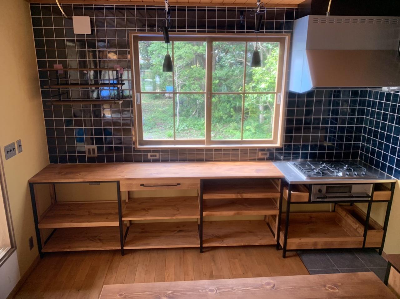 アイアンフレームで男前なキッチンです アイアンフレームもCAROで手作り! ステンレス天板・人工大理石天板・タイルの天板にも 対応いたします 新築又はリフォームにいかがでしょうか?