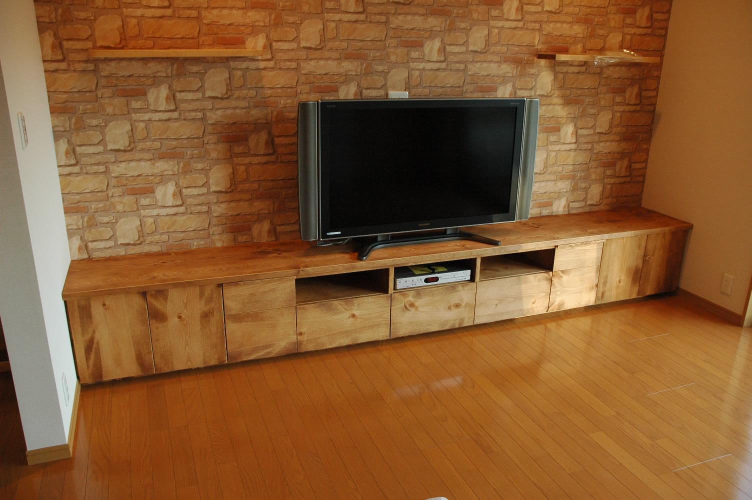壁から壁ピッタリのTV台です。 ピッタリ収めたいので 採寸させていただきピッタリで制作いたします